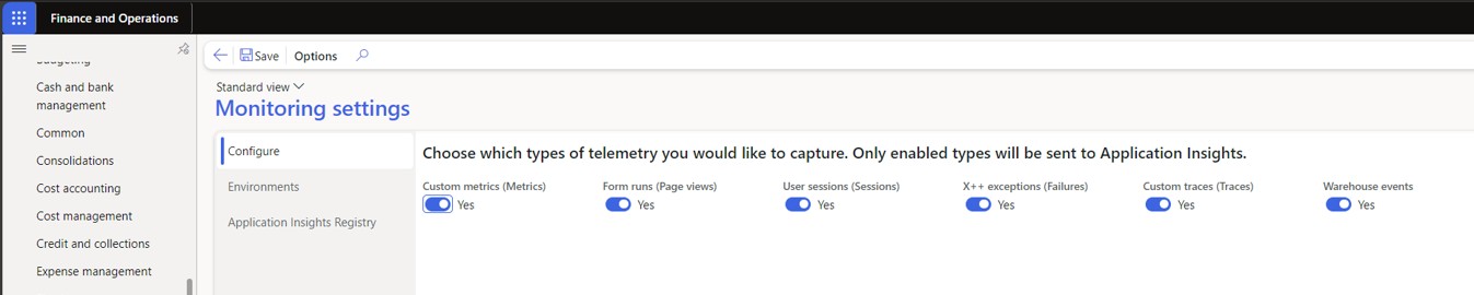 That’s it! D365F&O will start sending telemetry data to Application Insights automatically. You’ll begin seeing logs within a few minutes.